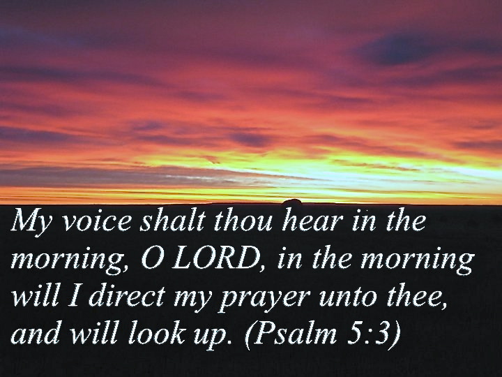 1. Morning prayer is a pleasure because it reminds us of our need of God. David lived his life with one trial after another. These trials were a constant reminder to him that he needed his Heavenly Father daily. When we start our day with prayer, we are saying to God: ” I need you throughout this day. I need your wisdom. I need your strength. I need your protection.” Morning prayer enables us to come to God with all humility